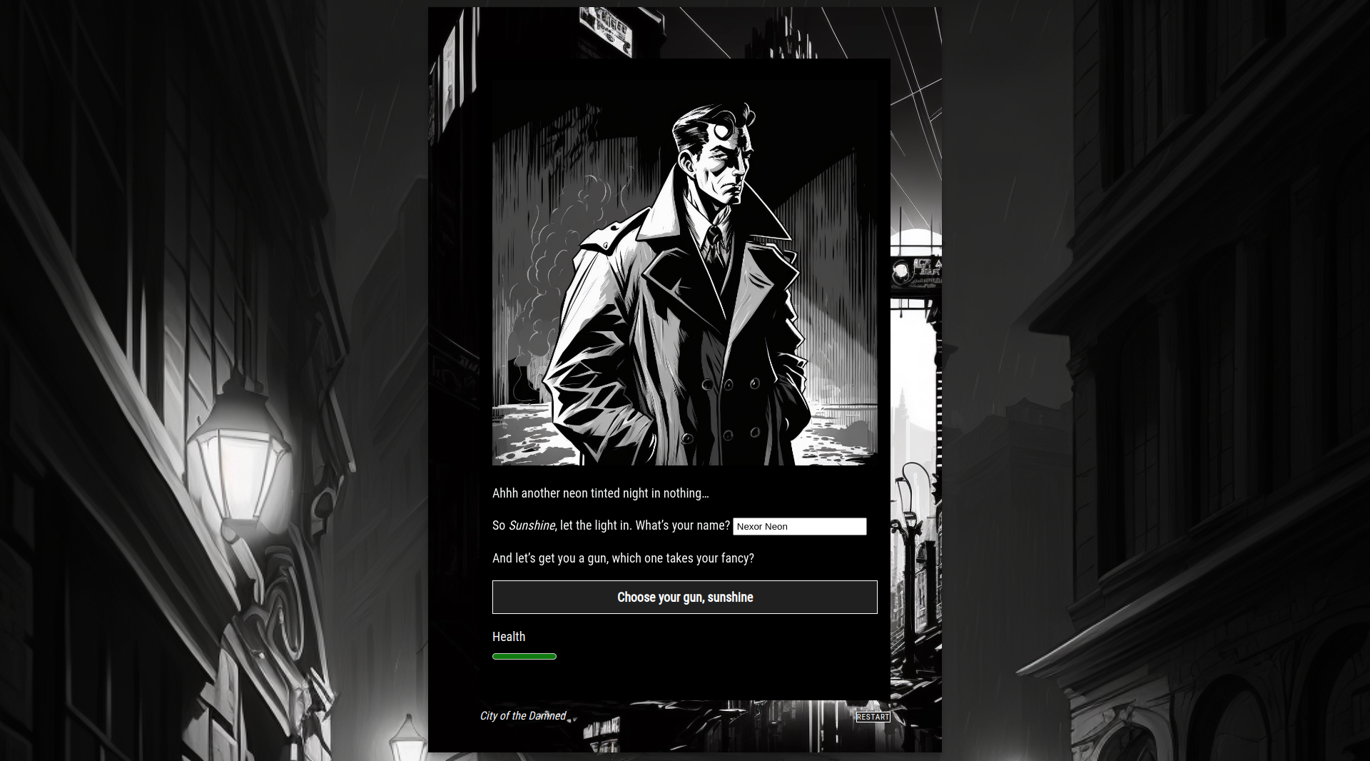 A retro futurist occult thriller game built with twine / html and javascript with artworks generated with Midjourney.
