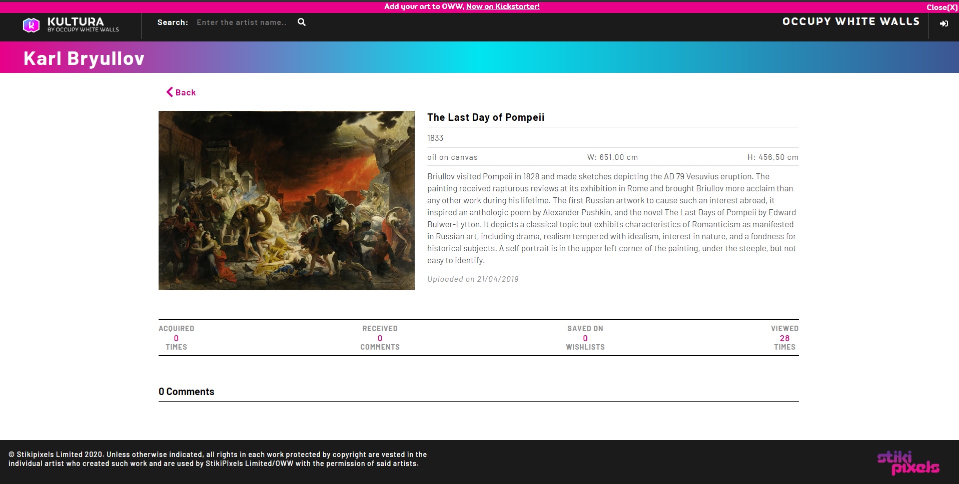 Commercial application for popular art MMO Occupy White Walls. Made with React