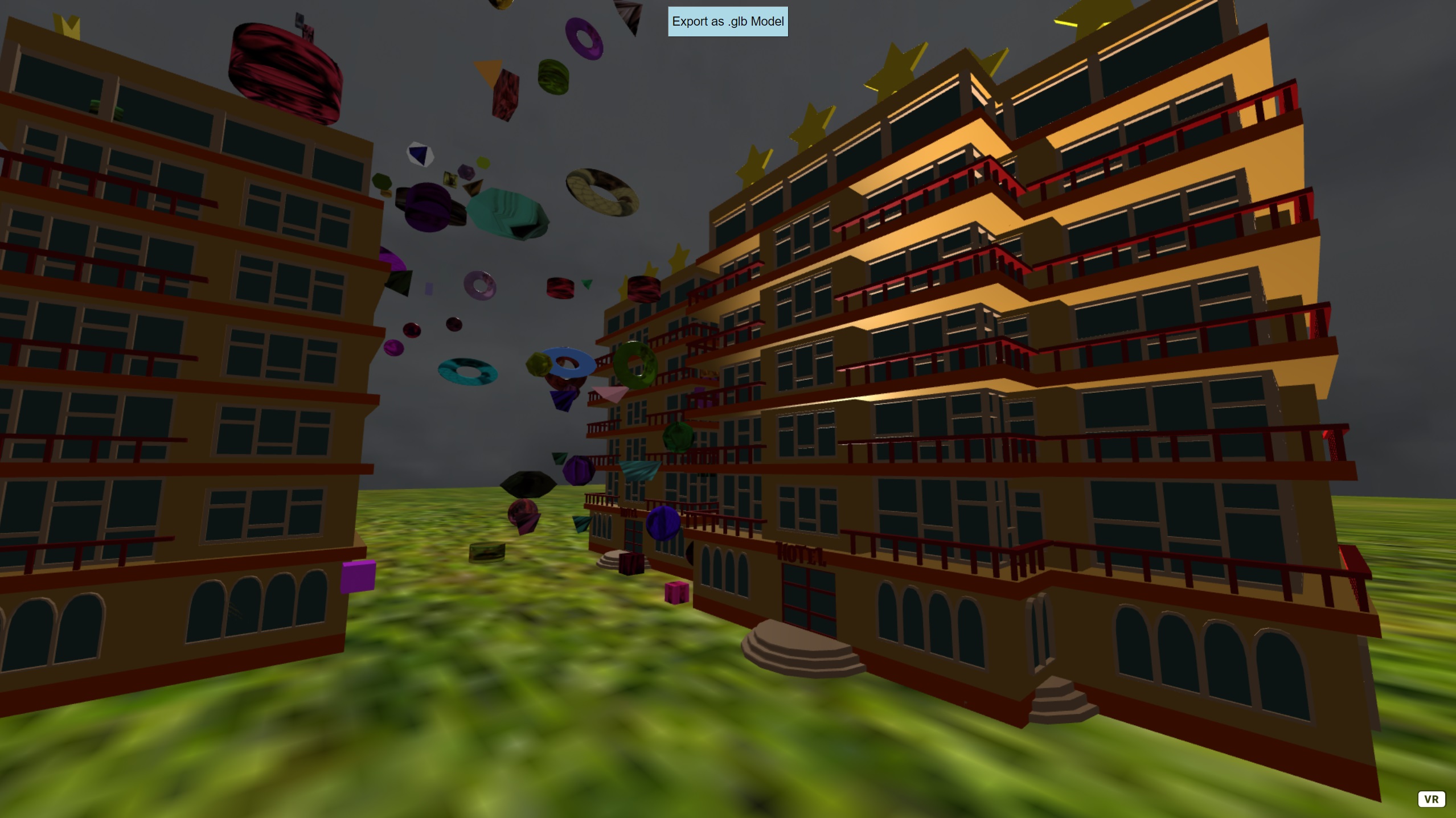 Experimental A-Frame component to generate random entities in an A-Frame project n load generate a randomised 3D sculpture with random primitives, scale, textures, colors and random positioning based on seed values Assign random textures if texture mode is on (Optional), random colour to each shape. Supports GLB exports of generated scenes