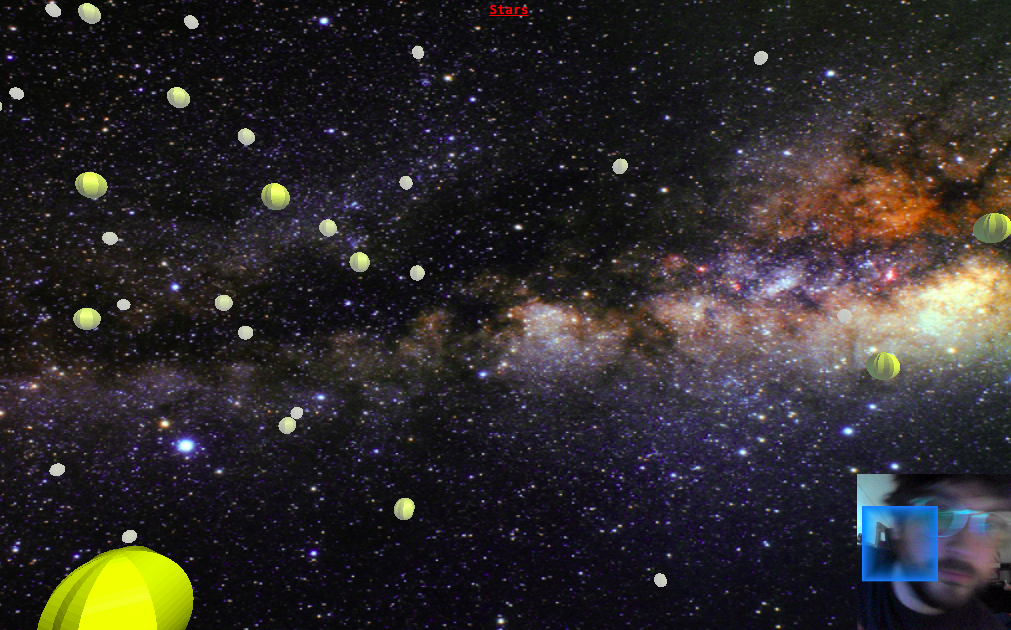 This is an implementation of the headcontrols demo from the JeelizFaceFilter headcontrols demo I wanted to create a space scene and learn more about how to use facetracking for navigating three js scenes so I created a space scene which you can control with your webcam.